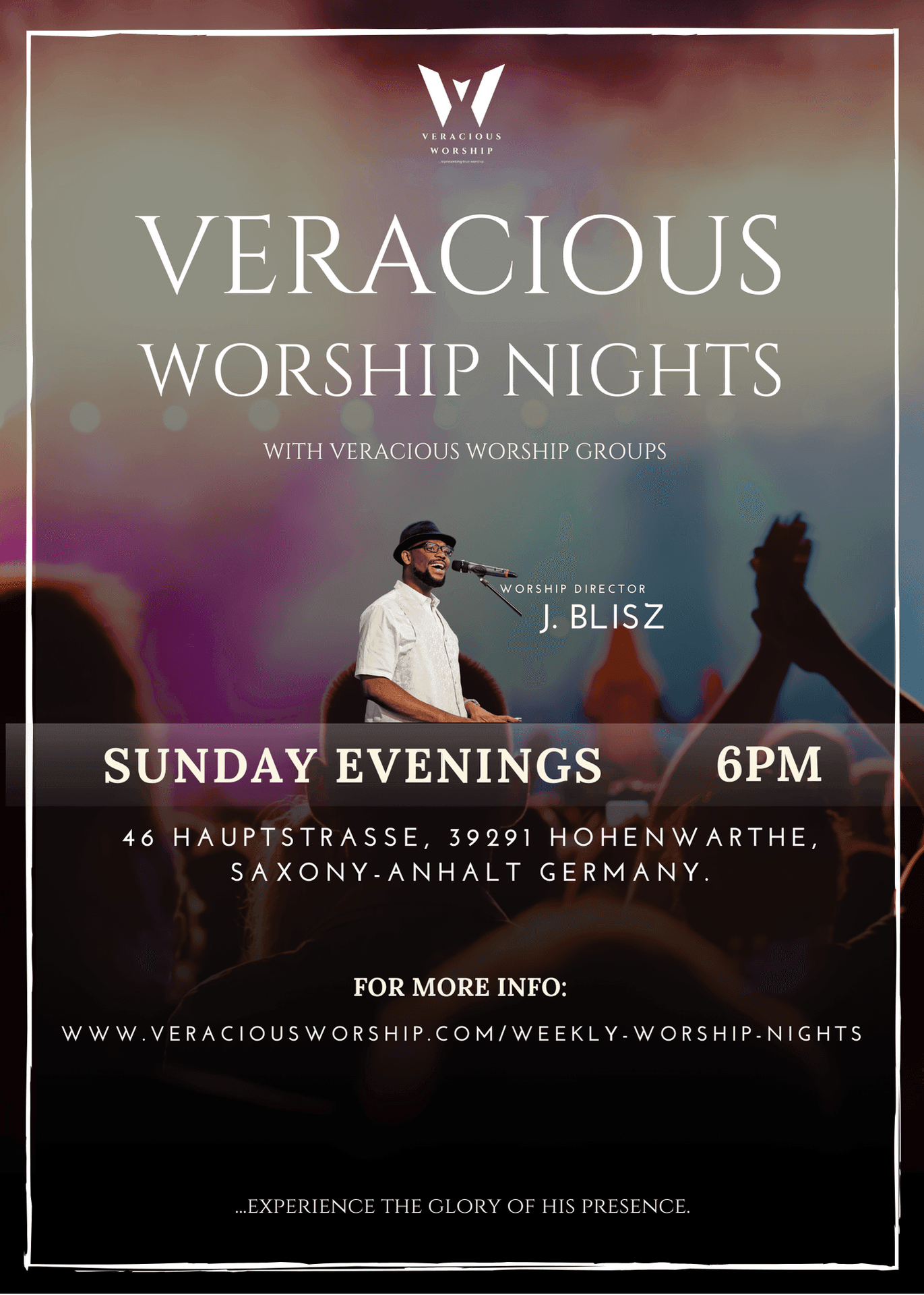 Join us for an uplifting evening at the Veracious Weekly Nights of Worship, where we celebrate our faith through music, worship, and fellowship. Each week features a dynamic worship service that includes powerful performances by the Veracious Worship group, inspiring guest artists.